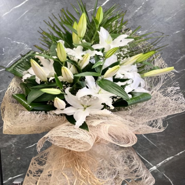 Özel Kazablanka Buketi, zarif beyaz Kazablanka lilyum çiçekleriyle tasarlanmış özel bir çiçek aranjmanıdır. Zarifliği ve saf güzelliği ile herkesi büyüleye